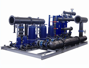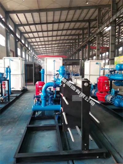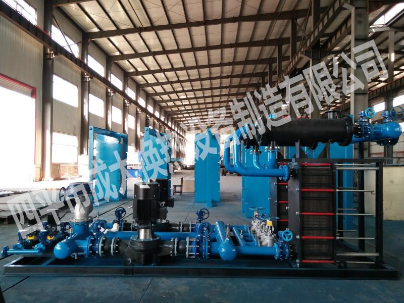 我公司換熱機組是集成了換熱器,循環泵,補水泵,溫度計,壓力表,各種傳感器,管路和閥門及工控于一體的成套區域供熱設備,并加裝了補水系統,定壓系統,水處理系統,變頻流量控制系統,熱量計及網絡控制通訊系統。是把大量用戶現場的水泵,閥門,儀表的選擇以及管道法蘭焊接的工作以及電氣控制的現場安裝調試工作,用我公司來完成,我公司生產的各規格機組,容量從 0.2MW 到 15MW ,采用標準模塊代設計,自由組合,以滿足用戶不同工況的要求,為用戶提供更合理更適用的機組,在滿足用戶使用的要求前提下,盡可能為用戶節省設備的投資。