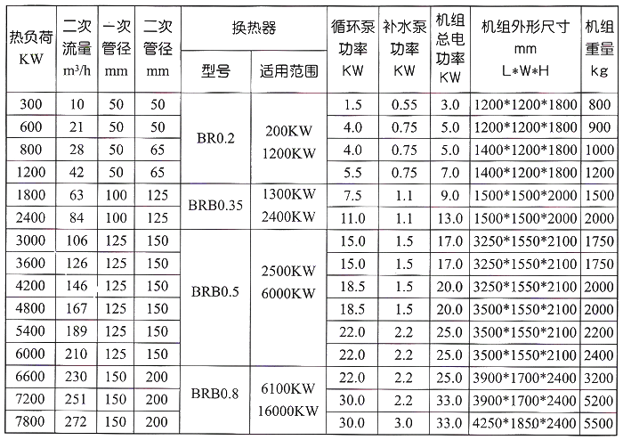 采暖工況:供暖半徑按1.5公里,循環泵揚程按20-30米,補水泵揚程按45米。